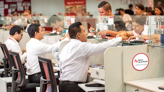 El Banco de la Nación opera en todo el país con una red de más de 550 agencias, 1100 cajeros automáticos y 11 000 agentes corresponsales propios; así como, más de 16,000 agentes corresponsales compartidos.